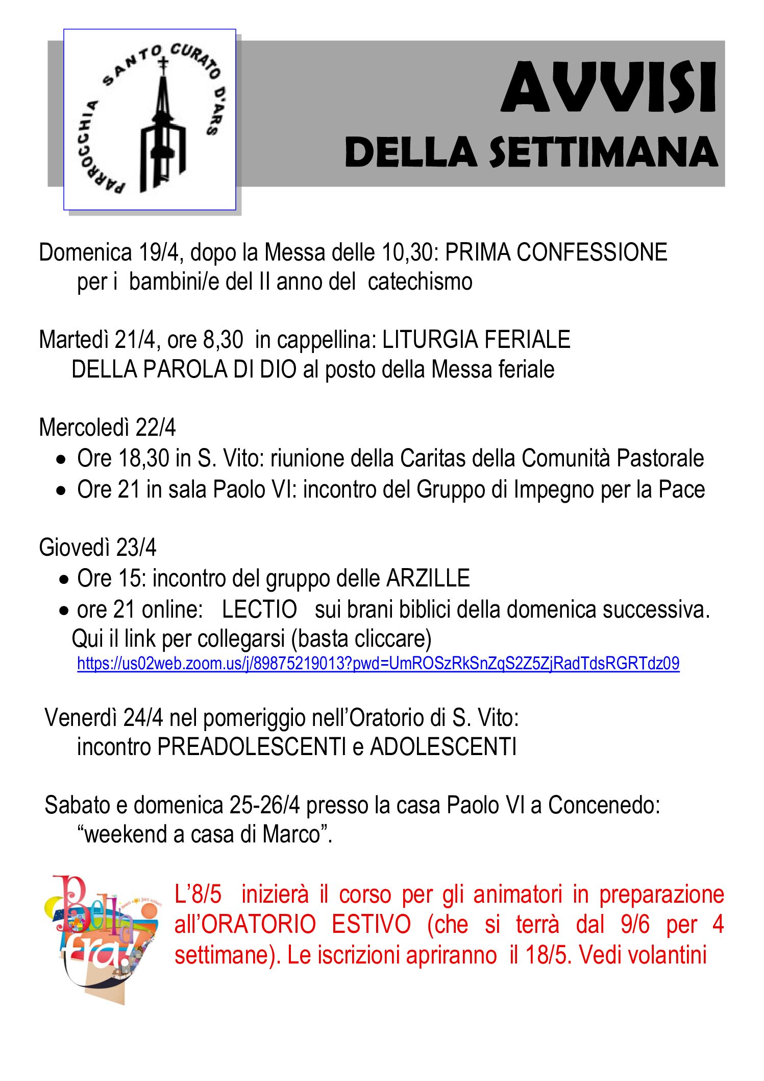 Santo Curato d'Ars Aggiornamenti