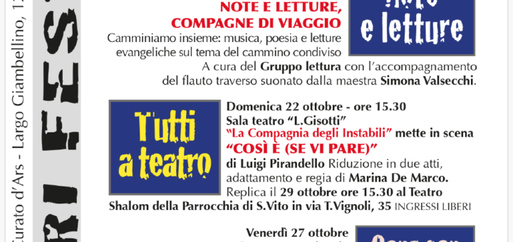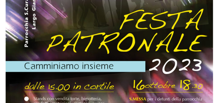 Programma completo della Festa Patronale – Domenica 15 ottobre 2023: Ore 10.30: S. Messa. Nell’occasione sono annullate le altre messe (comprese la prefestiva) perchè almeno nella festa patronale vorremmo essere tutti insieme intorno all’unica...